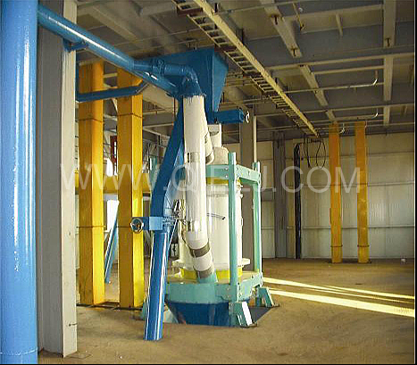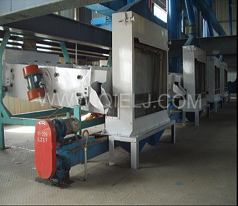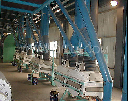 清理工序:采用磁選器去除鐵雜;振動清理篩去除大雜、秸稈等;比重去石機去除石子和磚塊等重雜;除塵系統采用單聯剎克龍以及離心風機進行有效的除塵,以保證車間衛生和清理輕雜。