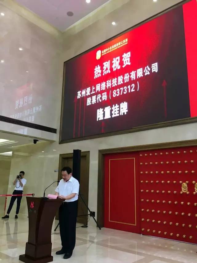 2016年5月9日,蘇州愛上網(wǎng)絡(luò)科技股份有限公司在全國中小企業(yè)股份轉(zhuǎn)讓系統(tǒng)正式掛牌,股票代碼837312,股票簡稱“愛上網(wǎng)”,交易方式為協(xié)議轉(zhuǎn)讓。