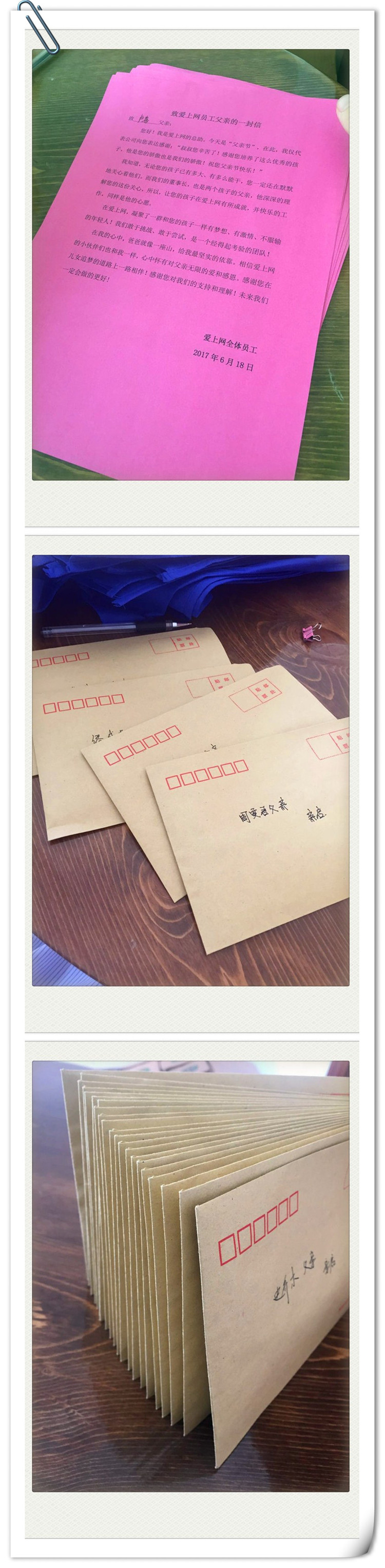 活動二:代表公司給每位父親寫了一封感恩的書信,一份精美的禮物,祝各位父親節(jié)日快樂!